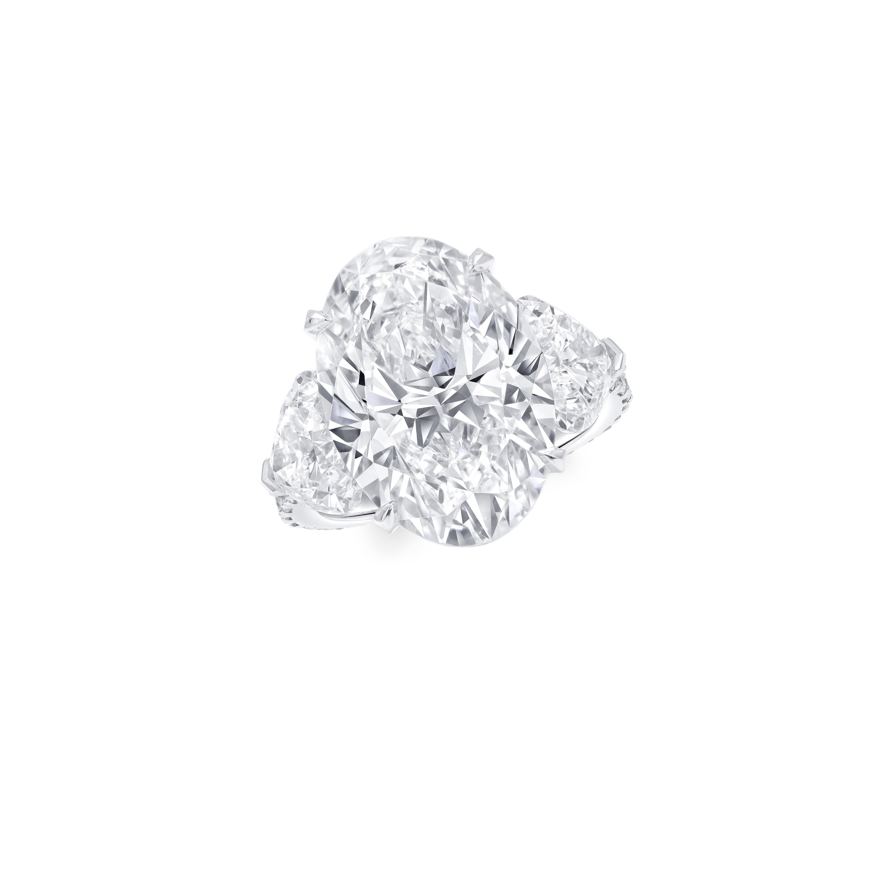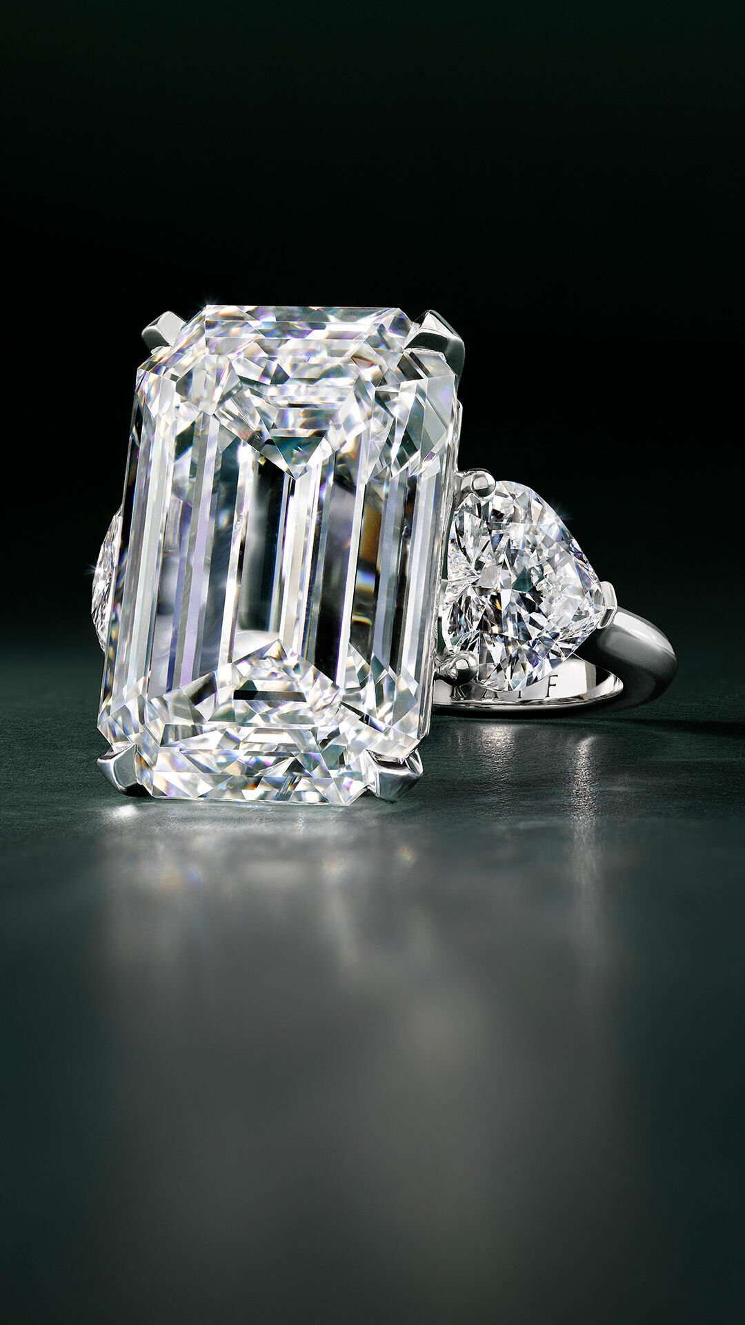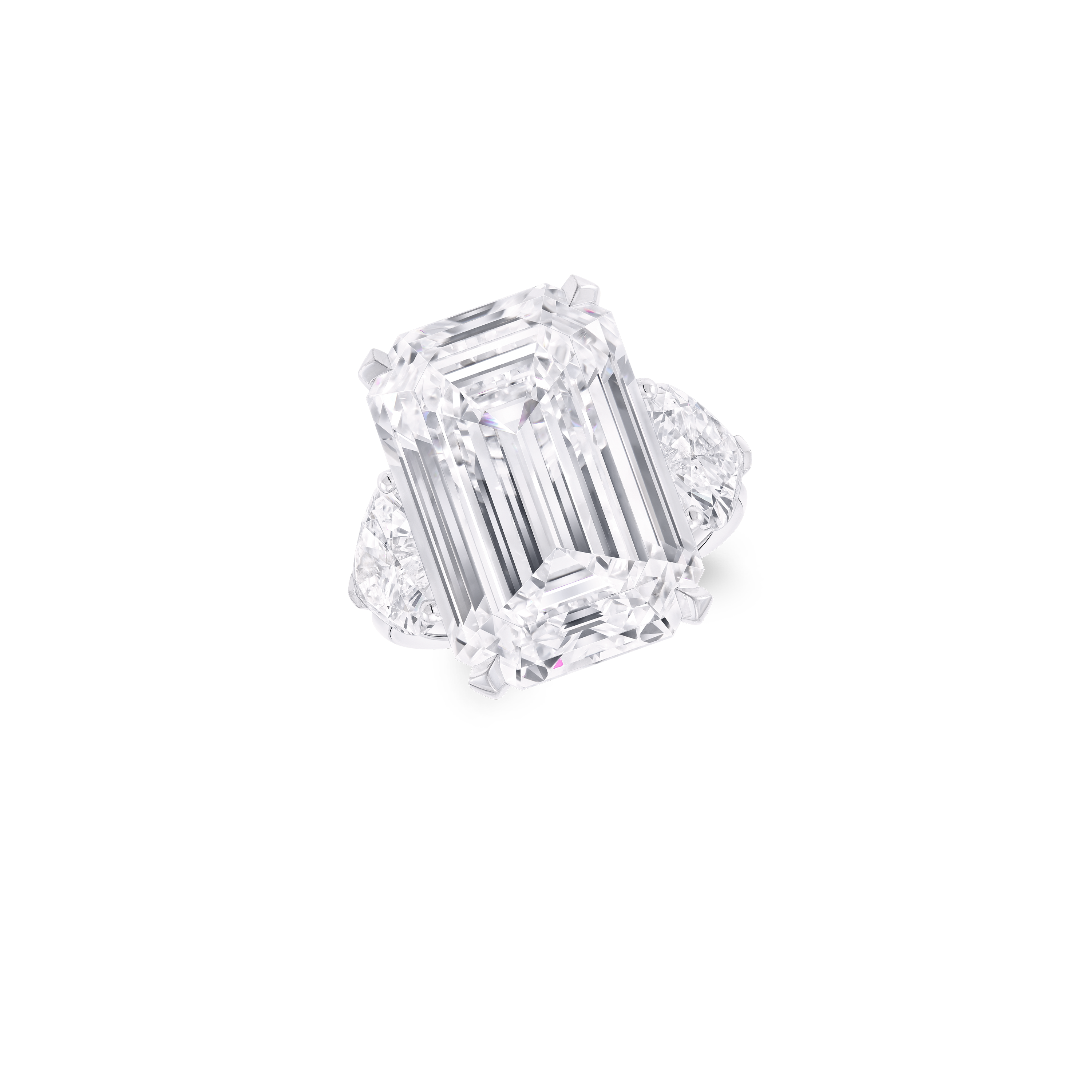 At Graff, excellence in craftsmanship is showcased through each creation. A magnificent 20.45 carat emerald cut D Flawless diamond with Excellent polish and Excellent symmetry is embraced by heart shape diamond shoulders, totalling 3.04 carats.