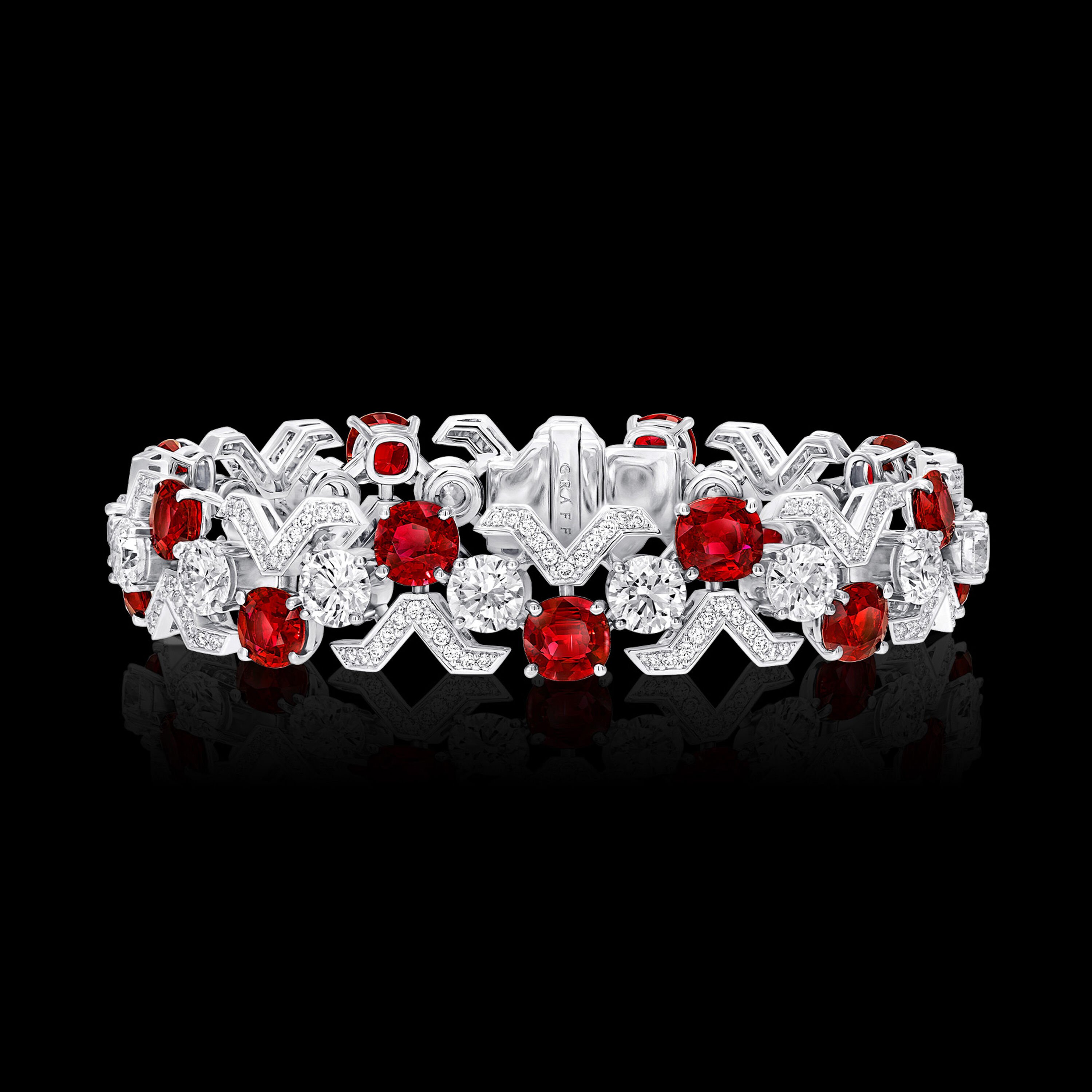 Over 50 carats of rubies and diamonds are cradled within a hand-crafted, minimalist platinum setting by Graff’s master artisans, allowing each stone's natural beauty to shine with brilliance and lustre.