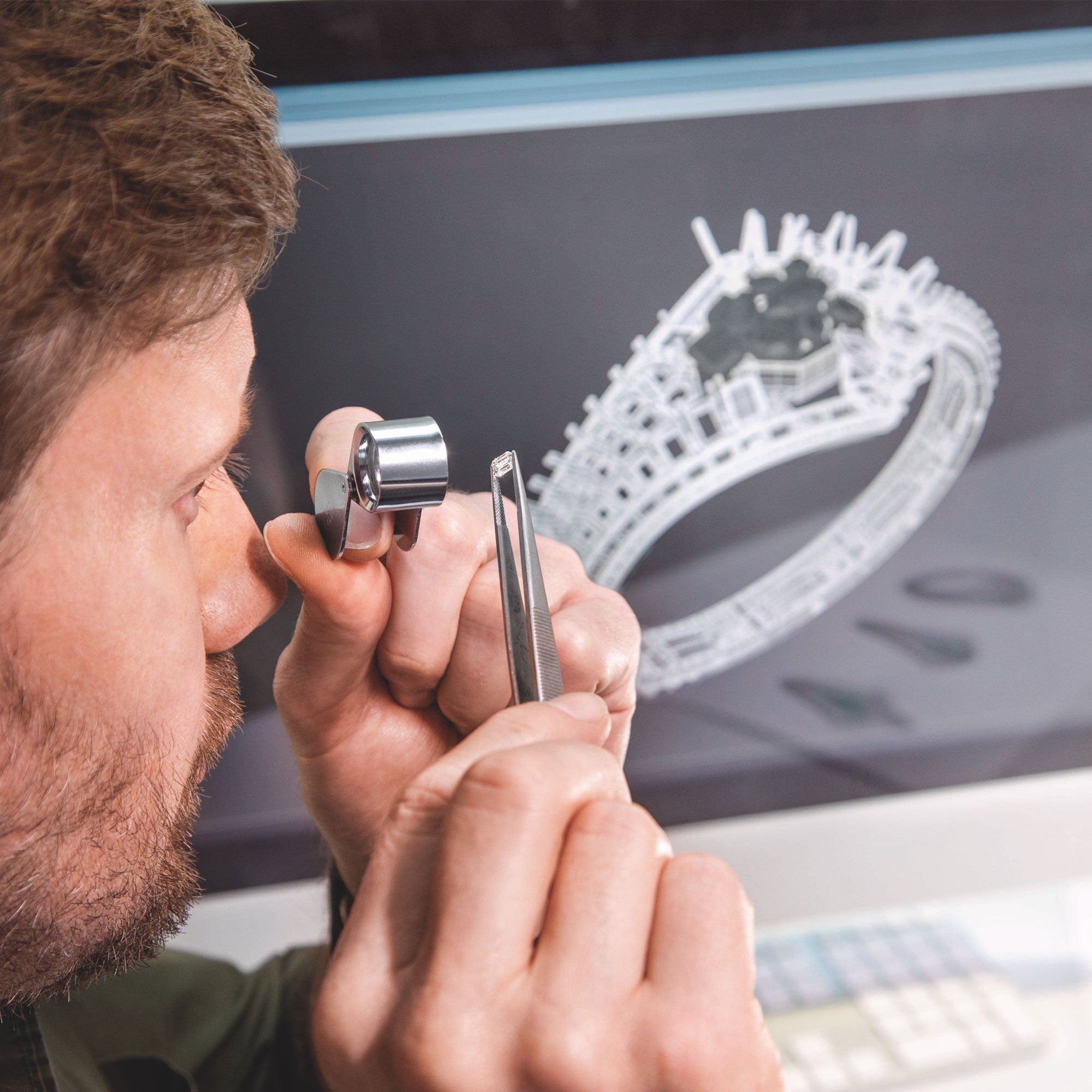 다이얼을 감추는 시크릿 워치의 제작 과정은 정교한 시계 미학의 정점을 향한 도전과도 같습니다. 하이 주얼리 시크릿 워치는 손목을 부드럽게 감싸는 브레이슬릿의 착용감, 깊은 곳에서부터 뿜어져 나오는 최고급 다이아몬드의 광채, 자연스럽고 유려한 움직임 등 젬스톤에 대한 뛰어난 노하우와 기술적 독창성이 결합된 예술을 통해 제작됩니다. 그라프의 마스터 장인은 손목 위의 예술로 완성된 이 매혹적인 작품에 정교한 디테일을 비밀처럼 숨겨놓으며 그라프 시크릿 워치의 유산을 이어갑니다.